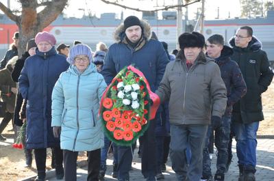 Затем делегация ЕАО проследовала до станции Ольгохта, которая в 1922 году была последним опорным пунктом белых на пути к Волочаевскому укрепрайону. В память о народоармейцах и красных партизанах, погибших в кровопролитных боях, коммунисты области возложили к обелиску цветы и венки.