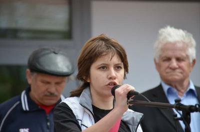 Комсомолка Диана Панчук прочитала собравшимся стихотворение Владимира Высоцкого «На братских могилах не ставят крестов…».