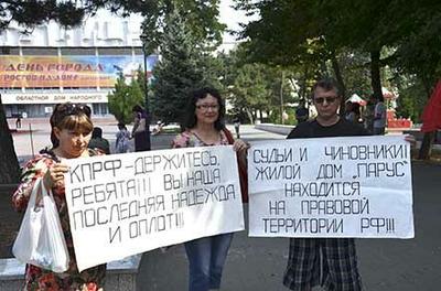 В руках жителей района – плакат со словами выстраданными, идущими от сердца: «КПРФ – держитесь, ребята! Вы наша последняя надежда и оплот!». Это жители дома 63/11 (бывшего общежития с красивым названием «Парус», сменившего «хозяина») по проспекту 40-летия Победы. Об их бедах рассказал собравшимся Валерий Казачев:
