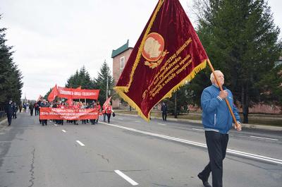 В 11 утра колонна КПРФ начала движение от городского Дворца культуры. Держа в руках красные флаги и транспаранты с лозунгами о социальной справедливости, участники шествия проследовали по улице Горького и проспекту 60-летия СССР до площади Ленина.