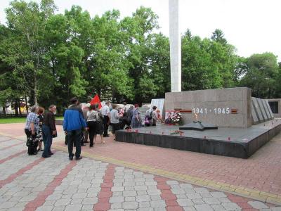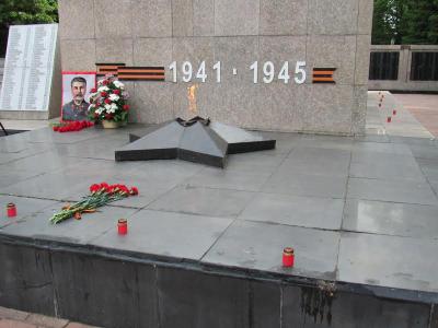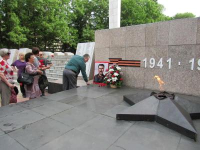Отдавая дань памяти советским гражданам, отстоявшим Советский Союз три четверти века назад, и жертвам нацизма, погибшим под бомбами, в концлагерях, от голода, холода и тяжелейших испытаний Великой Отечественной войны, коммунисты Биробиджана возложили цветы к Монументу Славы и Вечному огню. Члены местной партийной организации восстановили историческую справедливость, напомнив, что германский нацизм был разгромлен под руководством Иосифа Сталина, и установили его портрет у Вечного огня рядом с плитами, на которых высечены имена солдат и офицеров, приближавших победу под командованием генералиссимуса Сталина.