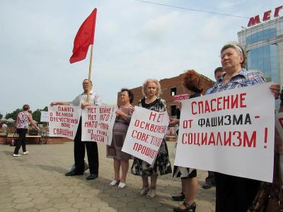 С такими лозунгами вышли на пикет, приуроченный ко Дню Памяти и скорби по случаю 22 июня, коммунисты Биробиджана.Участники протестной акции напомнили жителям и гостям столицы Еврейской автономии о той роли, которую сыграли капиталистические государства в разжигании Второй мировой войны.