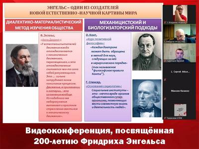 25 декабря состоялась комсомольская видеоконференция, посвящённая 200-летию со дня рождения выдающегося мыслителя и революционера, друга и соратника Карла Маркса, одного из основоположников коммунистической идеологии Фридриха Энгельса.
