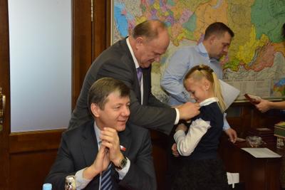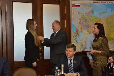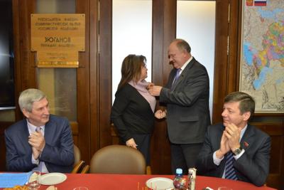«Один из главных итогов ушедшего года, – отметил Г.А. Зюганов, - историческое воссоединение Крыма и Севастополя с Россией. Хотим вас наградить памятной медалью, приуроченной Центральным Комитетом к 70-летию освобождения Крыма и Севастополя от немецко-фашистских захватчиков, что созвучно и с недавними событиями».