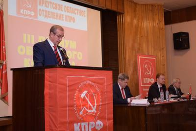 С докладом по первому вопросу «О задачах коммунистов Иркутского областного отделения КПРФ о выполнении решения IX(октябрьского) Пленума ЦК КПРФ «Об укреплении идейно-политических, организационных и нравственных основ КПРФ» выступил первый секретарь областного комитета, губернатор региона Сергей Левченко.