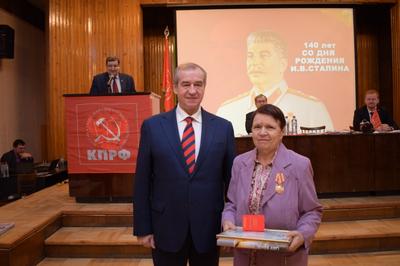 Памятными медалями ЦК КПРФ "В ознаменование 150-летия со дня рождения В.И. Ленина" были награждены члены Совета старейшин при Иркутском обкоме КПРФ К.М. Познянский, И.И. Титов, В.А. Неупокоев, Н.П. Петроченко, А.Д. Хотулёв, М.Н. Раздобреев и сотрудник идеологического отдела Иркутского обкома КПРФ М.Г. Ротанина. Медали "В ознаменование 140-летия со дня рождения И.В. Сталина" были вручены первому секретарю Усть-Илимского горкома КПРФ Н.Л. Шестаковой, первому секретарю Казачинско-Ленского райкома КПРФ Л.Н. Потаповой.