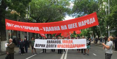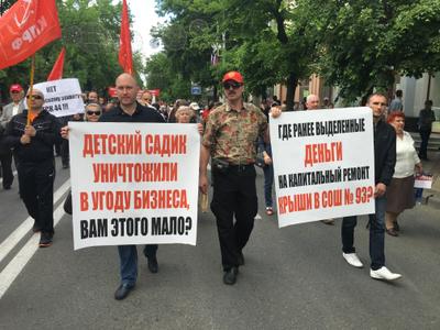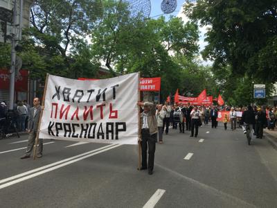 Фоторепортаж с шествия КПРФ в Краснодаре. Лозунги солидарности и "парад проблем", порожденный деятельностью мэра-единоросса Евланова