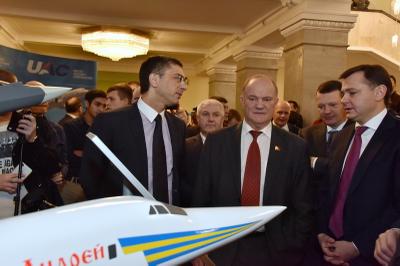 7 декабря в Государственной Думе открылась выставка, посвященная 10-летию создания Объединенной авиастроительной корпорации. В торжественной церемонии открытия выставки принял участие Председатель ЦК КПРФ, Руководитель фракции КПРФ в Государственной Думе Г.А. Зюганов.