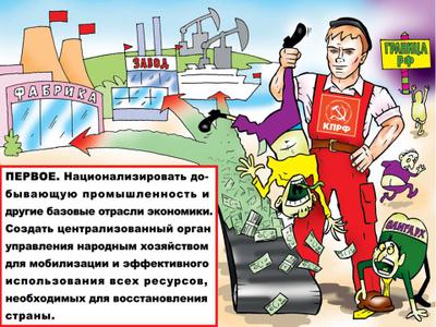 «В этой связи надо определиться по принципиальным вопросам. Будут ли все недра, принадлежащие по Конституции народу, работать на каждого человека, или по-прежнему на 15 кланов? Каким образом сделать так, чтобы привести экономическую и социальную систему в равновесие, чтобы она завтра не рванула? Но как можно привести социальную систему в равновесие, когда 10 процентов граждан нашей страны завладели в результате предыдущей так называемой «приватизации» 90 процентами собственности? Если бы такую приватизацию Чубайс провел в Америке, его бы посадили на электрический стул. И рука бы у американцев не дрогнула», - считает лидер российских коммунистов.