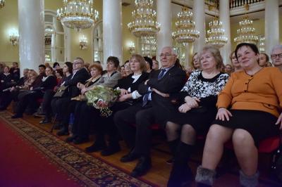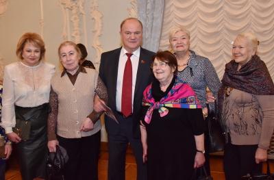 Было очень много цветов от поклонников таланта народного певца И.Д. Кобзона. В завершение перед участниками вечера выступил Председатель ЦК КПРФ Г.А. Зюганов. «Я хочу от всех вас поклониться Иосифу Давыдовичу, ансамблю, все тем великим годам, которые обеспечили наши выдающиеся победы. Мы - наследники, мы – дети Победы. В нас течет кровь отцов и дедов-победителей. Семь великих побед обеспечили рождение нашего государства от Черного и Балтийского морей до Тихого океана. Наша страна из 1000 лет 700 лет была вынуждены провести в боях и походах, отстаивая свое право на веру, землю, язык, культуру и нашу интернациональную дружбу», - отметил Геннадий Андреевич.