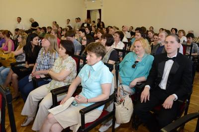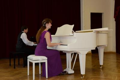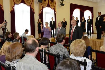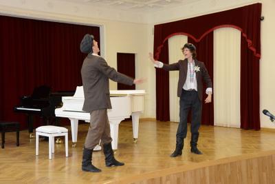 Следующим пунктом программы визита Председателя ЦК КПРФ стало посещение организованного студентами концерта. Он начался с исполнения творческим коллективом институтского театра «Недослов» песни А.Пахмутовой «Мельпомена», написанной в 1991 году специально для ГСИИ. Особенностью ее стало то, что актеры были немыми, и «пели» они при помощи языка жестов. Затем студентка подготовительного отделения из Оперного театра ГСИИ Диана Хачатрян исполнила вторую песню Лауры из оперы «Каменный гость» - уже голосом. Оглушительными аплодисментами встретили зрители выступление Кристины Лукмановой, сыгравшей на скрипке «Вариации на одной струне: Моисей» Паганини. Затем на сцене исполнили два фортепьянных номера: причем в одном из них пианисты Елена Кухаренко и Роман Чистяков сыграли дуэтом. Завершил концерт шуточный номер «Ты да я, да мы с тобой».