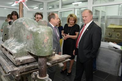 Перед входом в здание ГСИИ лидера российских коммунистов, прибывшего сюда вместе с руководителем аппарата фракции КПРФ в Госдуме Н.А. Останиной и главой пресс-службы ЦК Компартии А.А. Ющенко, тепло встретил ректор А.Н. Якупов. Он организовал для Г.А. Зюганова небольшую экскурсию по институту.