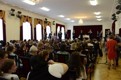 После окончания музыкальной программы перед студентами и преподавателями выступил Г.А. Зюганов.