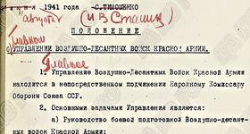 И 80 лет назад, 2 августа 1941 года Верховный Главнокомандующий И.В. Сталин отредактировал и лично утвердил Положение о Главном (именно Главном в сталинской редакции!) Управлении Воздушно-Десантных Войск Красной Армии, подчинив его непосредственно Народному Комиссару Обороны Союза ССР.