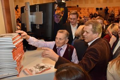 «Я благодарен тем, - продолжил Геннадий Андреевич, - кто выпустил эту книгу. Поскольку считаю, что память о тех, кто сражался, для всех нас священна. А для моей семьи она втройне священна. Я родом с Орловщины, где сломали хребет фашистскому зверю, где были самые жуткие бои. От моего родного города Орла уцелел только один дом в самом центре, на который наши наступающие войска водрузили флаг с надписью «За Родину! За Сталина!». И с тех пор мы каждый год поднимаем этот флаг, а рядом похоронены герои-танкисты, артиллеристы и все, кто сражался».