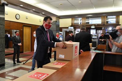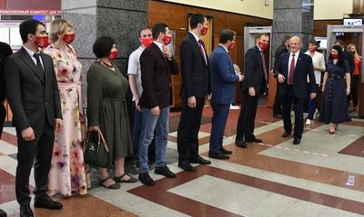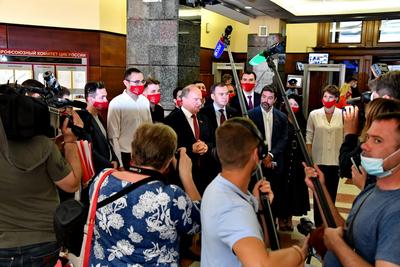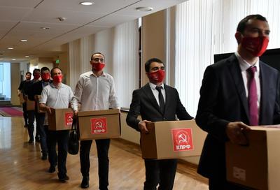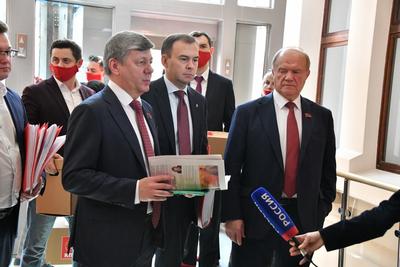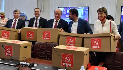 В понедельник, 5 июля, прошла процедура подачи документов в Центризбирком для регистрации кандидатов в депутаты Государственной Думы ФС РФ восьмого созыва. В ней приняли участие Председатель ЦК КПРФ Г.А. Зюганов, первый заместитель Председателя ЦК КПРФ Ю.В. Афонин, заместитель Председателя ЦК КПРФ Д.Г. Новиков и руководитель пресс-службы ЦК КПРФ А.А. Ющенко.