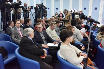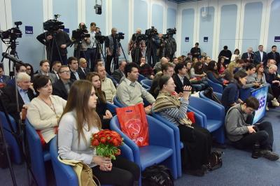 В пресс-конференции приняли участие заместитель Председателя ЦК КПРФ Д.Г. Новиков, член Президиума, секретарь ЦК КПРФ Ю.В. Афонин, сопредседатель Союза писателей России, советник Председателя ЦК КПРФ Л.Г. Баранова-Гонченко, писатель, журналист, общественно-политический деятель С.А. Шаргунов, руководитель пресс-службы ЦК КПРФ А.А. Ющенко.