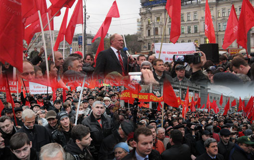 Г.А. Зюганов отметил, что только солидарной работой, как в стенах законодательных органов, так и на улицах, можно остановить произвол. Иначе страну ждет хаос и диктатура.