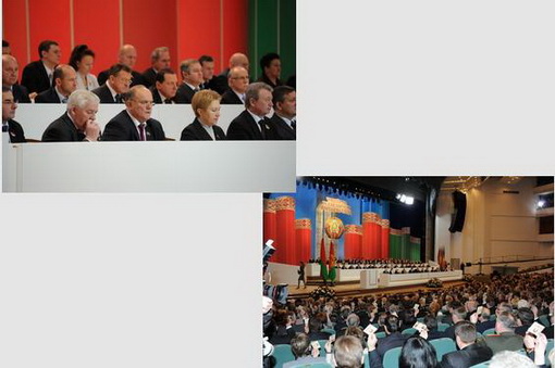 С докладом перед участниками народного собрания выступил Президент Белоруссии Александр Григорьевич Лукашенко. Его выступление продолжалось более 3-х часов, было очень ярким и содержательным. Г.А. Зюганов отметил, что белорусский лидер показал на примере каждой отрасли народного хозяйства, чего удалось добиться за последние годы. А сделано очень много. Успешно проводится модернизация промышленности, быстрыми темпами развивается село. Полностью обеспечена безопасность страны. Фактически, Белоруссия - одно из немногих государств мира, успешно преодолевающих последствия кризиса. И это не пустые слова. В их правоте может убедиться каждый, кто посетит республику и увидит ухоженные поля, хорошие дороги, стабильно работающие промышленные предприятия.