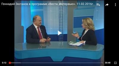 На телеканале «Россия 24» в программе "Вести.Интервью" выступил лидер КПРФ Г.А.Зюганов.На вопросы корреспондента "Вестей" ответил Председатель ЦК КПРФ, руководитель фракции КПРФ в Госдуме ФС РФ Геннадий Зюганов.
