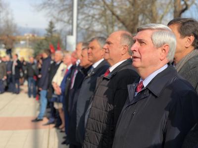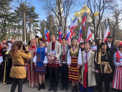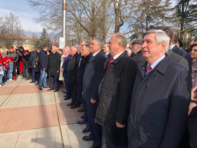 Утром 15 марта члены делегации Государственной Думы возложили в Симферополе цветы к памятнику "Народное ополчение всех времен" и приняли участие в торжественном митинге.