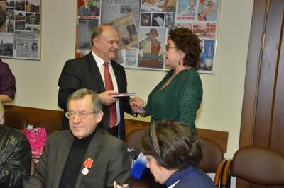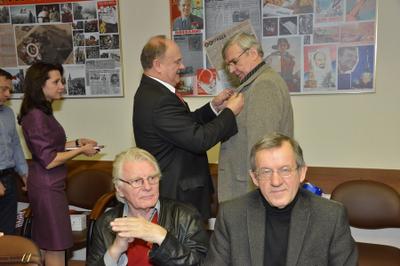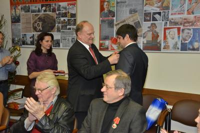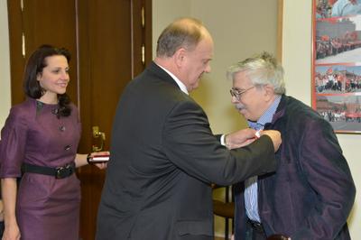 24 декабря Председатель ЦК КПРФ Г.А. Зюганов наградил группу деятелей культуры и спорта медалью ЦК КПРФ «90 лет СССР». В церемонии награждения приняли участие первый заместитель Председателя ЦК КПРФ И.И. Мельников, советник Председателя ЦК КПРФ Л.Г. Баранова-Гонченко, руководитель аппарата фракции КПРФ в Госдуме Н.А. Останина.