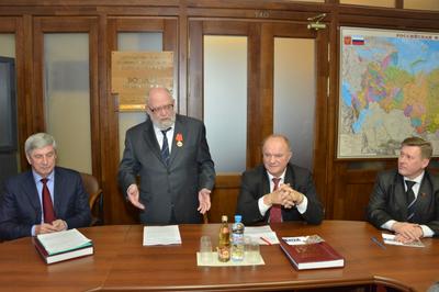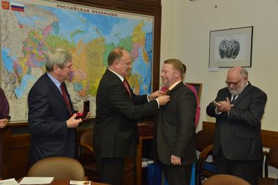 13 декабря Председатель ЦК КПРФ Г.А. Зюганов наградил памятной медалью ЦК КПРФ «90 лет СССР» группу художников – лауреатов Национальной премии в области современных изобразительных искусств России «Русская галерея XXI век» в 2012 году.