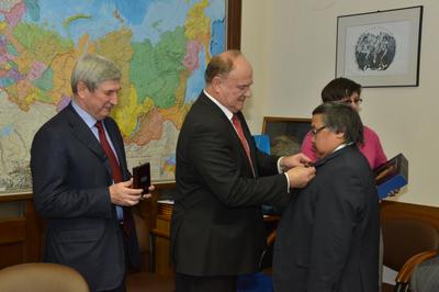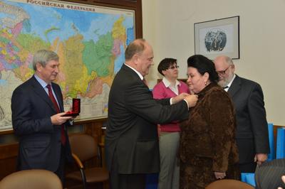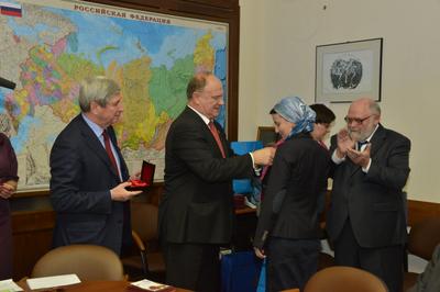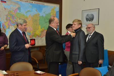 Вручая награды, лидер российских коммунистов отметил, что СССР – это наша общая Родина. КПРФ сегодня борется, чтобы возродить порушенное Отечество, в котором во главе угла были такие категории, как уважение к человеку труда, дружба народов и справедливость в обществе.