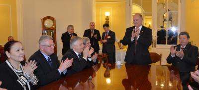 22 декабря в Москве Председатель ЦК КПРФ Г.А. Зюганов наградил памятной медалью ЦК КПРФ "90 лет СССР" большую группу представителей делегаций из братских коммунистических партий, которые прибыли на празднование 90-летия образования СССР.