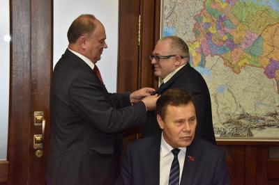 «В канун Нового года мы вручаем вам эти награды за выдающиеся заслуги, за защиту нашей державы, за помощь и поддержку Родины», - отметил в приветственном слове лидер КПРФ Г.А. Зюганов.