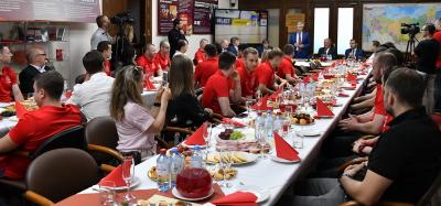 «Я ценю вас за ваши трудолюбие, самоотверженность и дисциплину, которые вы проявили, - отметил далее лидер КПРФ. - Во время матчей вы ни разу не дрогнули, не потеряли присутствие духа. А также благодарю вас за ту дружбу, которую вы пронесли через все удачи и поражения. У вас настоящий интернационал».