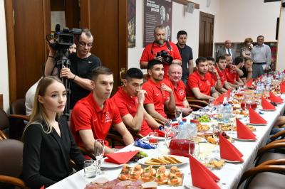 Особую благодарность Г.А. Зюганов высказал Президенту МФК КПРФ Ивану Мельникову (младшему) и чемпиону Европы, генеральному директору МФК КПРФ Аркадию Белову за подготовку команды.