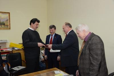 23 января в редакции газеты «Советская Россия» состоялась церемония вручения ежегодной премии «Слово к народу» за 2013 год. Вручили премии и дипломы лауреатам Председатель ЦК КПРФ Г.А. Зюганов и главный редактор газеты "Советская Россия", депутат Госдумы В.В. Чикин. В мероприятии принял участие заместитель Председателя ЦК КПРФ, депутат Госдумы Д.Г. Новиков.