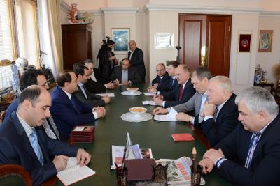 После церемонии награждения лидер КПРФ обсудил с послами стран Ближнего Востока политическую и экономическую ситуацию в регионе и в мире в целом. По основным позициям политические оценки сторон совпали. Участники встречи осудили агрессивную политику США, военного блока НАТО и высказали пожелания о дальнейшем укреплении дружбы между нашими странами и народами.