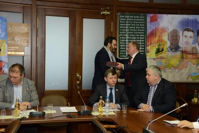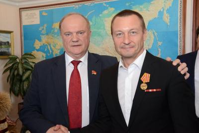Г.А. Зюганов также наградил медалью ЦК КПРФ «100 лет газете «Правда» известного военного журналиста, специального корреспондента Первого канала Антона Степаненко.