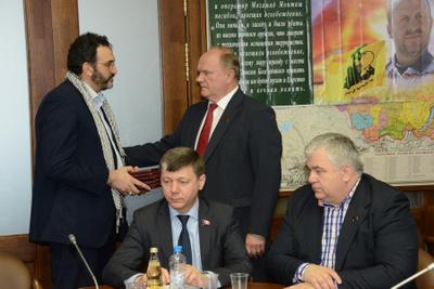В торжественной церемонии приняли участие заместитель Председателя ЦК КПРФ Д.Г. Новиков, член Президиума, секретарь ЦК КПРФ Л.И. Калашников, секретарь ЦК КПРФ К.К. Тайсаев, руководитель Пресс-службы ЦК КПРФ А.А. Ющенко, депутаты фракции КПРФ в Госдуме С.А. Гаврилов и А.П. Тарнаев. На встрече также присутствовали Чрезвычайный и Полномочный Посол Сирии в РФ Риад Хаддад, Чрезвычайный и Полномочный Посол Ирана в РФ Мехди Санаи, консул Посольства Ливана в РФ Милад Наммур, руководитель бюро телеканала «Аль-Манар» в России Хаж Али Ахмад Атех, руководитель союза арабских землячеств в России Хассан Насралла.