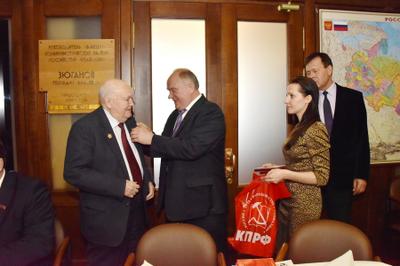 В церемонии награждения приняли участие заместитель Председателя ЦК КПРФ, академик РАН В.И. Кашин и секретарь ЦК КПРФ Н.В. Арефьев.