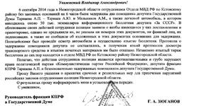 Председатель ЦК КПРФ Г.А. Зюганов направил телеграмму министру МВД В.А. Колокольцеву в связи с незаконным изъятием полицией агитпродукции КПРФ и преследованием агитаторов КПРФ в Кстовском районе Нижегородской области.