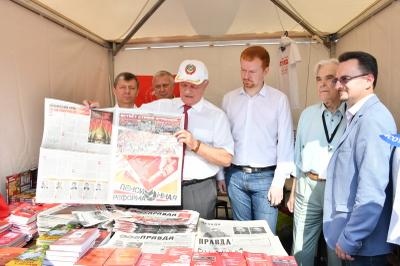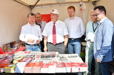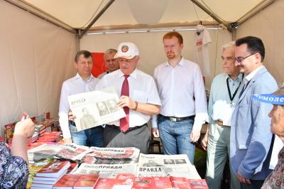 В субботу, 1 сентября, в Парке Победы на Поклонной горе стартовал Фестиваль прессы, в котором приняли участие представители партийной печати: газеты «Правда» и «Правда Москвы». Мероприятие посетил Председатель ЦК КПРФ Г.А. Зюганов, а также заместитель Председателя ЦК КПРФ Д.Г. Новиков, секретари ЦК КПРФ М.С. Костриков и М.В. Дробот, депутат Госдумы Д.А. Парфенов.
