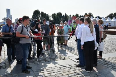 Также представителей СМИ интересовала роль прессы в жизни партии. Г.А.Зюганов отметил, что сегодня мы переживаем информационный бум, что заставляет КПРФ активно осваивать новые технологии в данной сфере. Геннадий Андреевич призвал посетителей фестиваля ознакомиться с экспозицией партийной прессы. Он отметил, что Компартия имеет порядка двухсот газет и свыше сотни сайтов. "Я считаю, что в этом отношении мы успешно развиваемся", - сказал он. Кроме того, лидер коммунистов пригласил всех желающих принять участие в акции протеста против пенсионной реформы, которая пройдет в Москве в воскресенье, 2 сентября.