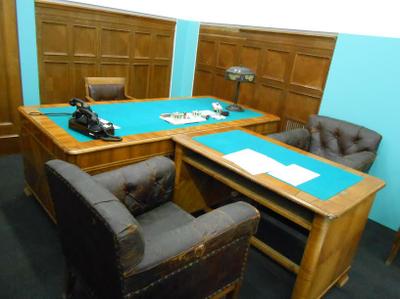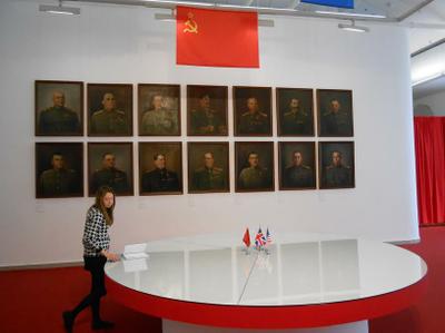 Это реконструкция не полей сражений, а интерьеров кабинетов руководителей страны периода войны, где шли не менее важные битвы за верные стратегические решения. В экспозиции собраны архивные документы, произведения искусства и подлинные предметы ушедшей эпохи, передающие атмосферу штабов Верховного Главнокомандующего и партизанского движения, создающие объективные портреты людей, на чьи плечи легла ответственность за судьбу огромной страны.