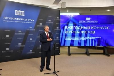 Представителей средств массовой информации, работающих в Государственной Думе, поздравили с Днем российской печати Председатель ГД Вячеслав Володин, руководители и депутаты всех парламентских фракций.