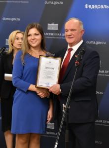В День российской печати Председатель ЦК КПРФ, Руководитель фракции КПРФ в Госдуме Г.А. Зюганов принял участие в церемонии награждения парламентских журналистов.