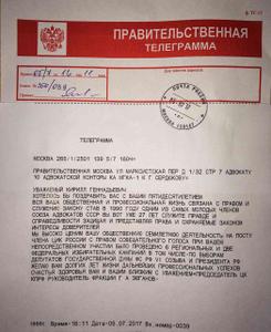 Председатель ЦК КПРФ, руководитель фракции КПРФ в Государственной Думе ФС РФ направил поздравительную телеграмму известному адвокату, бывшему представителю КПРФ в Центральной избирательной комиссии РФ Кириллу Геннадьевичу Сердюкову.