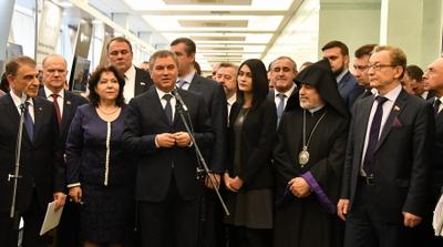 В открытии выставки также приняли участие Председатель Комитета по делам Содружества Независимых Государств, евразийской интеграции и связям с соотечественниками (организатор выставки) Л.И. Калашников, депутаты Государственной Думы, парламентарии Армении.