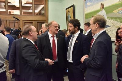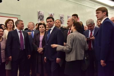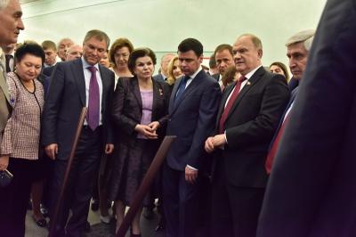 В торжественной церемонии открытия выставки принял участие Председатель ЦК КПРФ, Руководитель фракции КПРФ в Государственной Думе Г.А. Зюганов. На церемонии также присутствовали первый заместитель Председателя ЦК КПРФ, первый заместитель Председателя Государственной Думы И.И. Мельников, Председатель ЦКРК КПРФ, депутат Государственной Думы Н.Н. Иванов, депутаты-коммунисты Государственной Думы Т.В. Плетнева, В.Г. Поздняков и А.А. Ющенко.