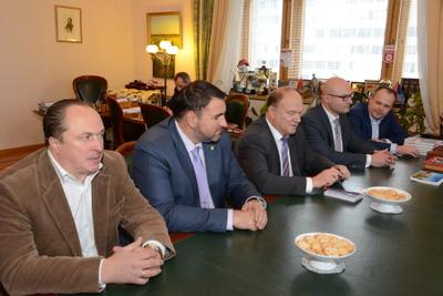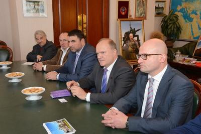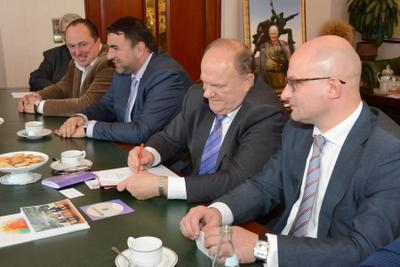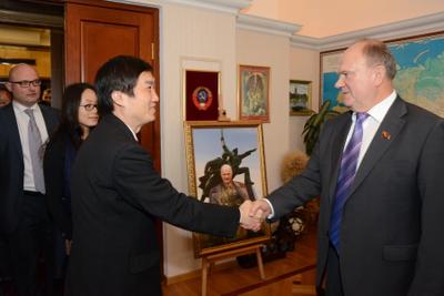 В начале встречи Г.А. Зюганов поприветствовал китайских товарищей в стенах Государственной Думы. Он рассказал, что посещал КНР восемь раз. Недавний его визит, состоявшийся в прошлом месяце, был приурочен к очередной годовщине образования КНР. В рамках поездки состоялся очень содержательный диалог. Прошли переговоры с Председателем КНР, лидером КПК Си Цзиньпином. Состоялись также встречи в Центральном банке Китая, в Комитете по развитию, в редакции газеты «Жэньминь жибао». В ходе визита был подписан новый меморандум о сотрудничестве между КПРФ и КПК. В нем большое внимание уделяется обмену опытом и делегациями между нашими партиями.