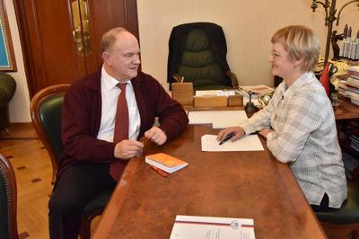Г.А. Зюганов провел встречу с руководителем фракции КПРФ в Законодательной Думе Томской области Н.Г. Барышниковой