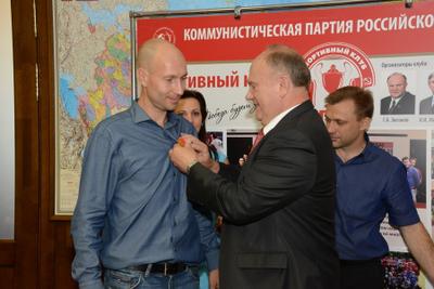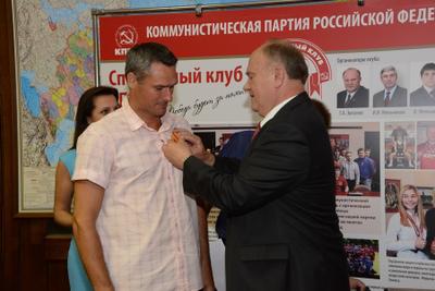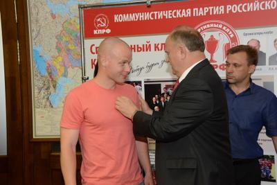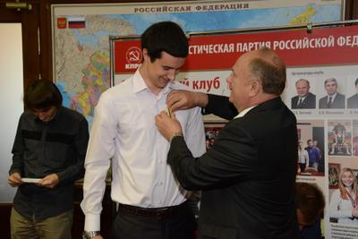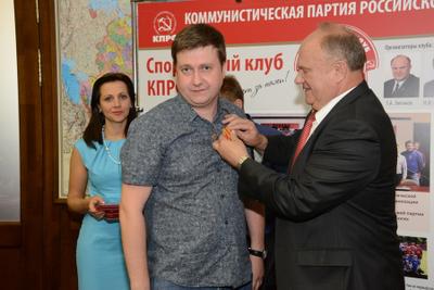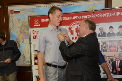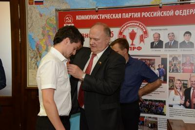 Торжественная церемония состоялась 4 июня во фракции КПРФ в Государственной Думе. В ней приняли участие Первый заместитель Председателя ЦК КПРФ, Первый заместитель Председателя Государственной Думы И.И. Мельников и Руководитель Пресс-службы ЦК КПРФ, депутат Государственной Думы А.А. Ющенко.