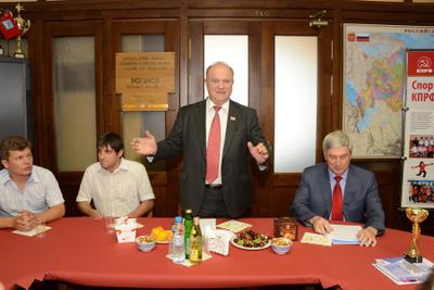 Геннадий Андреевич рассказал о тех мероприятиях, которые провели коммунисты за последнее время. Среди них XV Съезд КПРФ, празднование 1 и 9 мая, прием в пионеры 19 мая на Красной площади. «Многие из вас были не только очевидцами, но и участниками этих событий», - напомнил Г.А. Зюганов. Действительно, на XV Съезде КПРФ партийные билеты были вручены Евгению Клочкову и чемпиону мира и Европы, серебряному призеру Олимпийских игр по фигурному катанию Олегу Овсянникову.